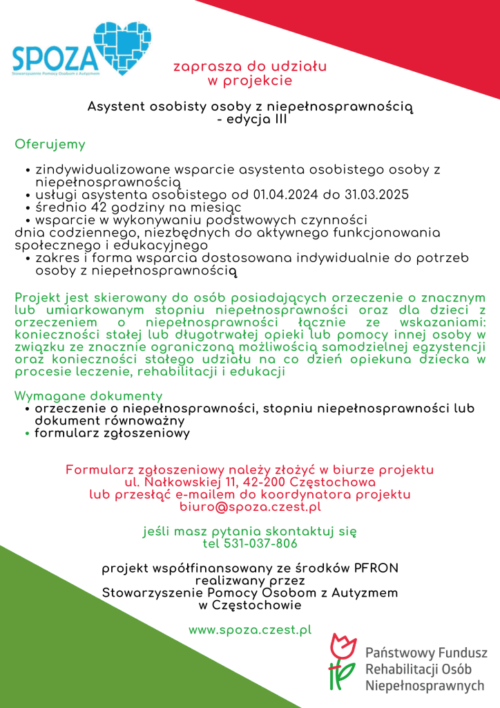 Asystent osobisty osoby z niepełnosprawnością PFRON 2024 Umiejętności Opublikowano w dniu 15 kwietnia 2024 Opieka wytchnieniowa – edycja 2024 →
