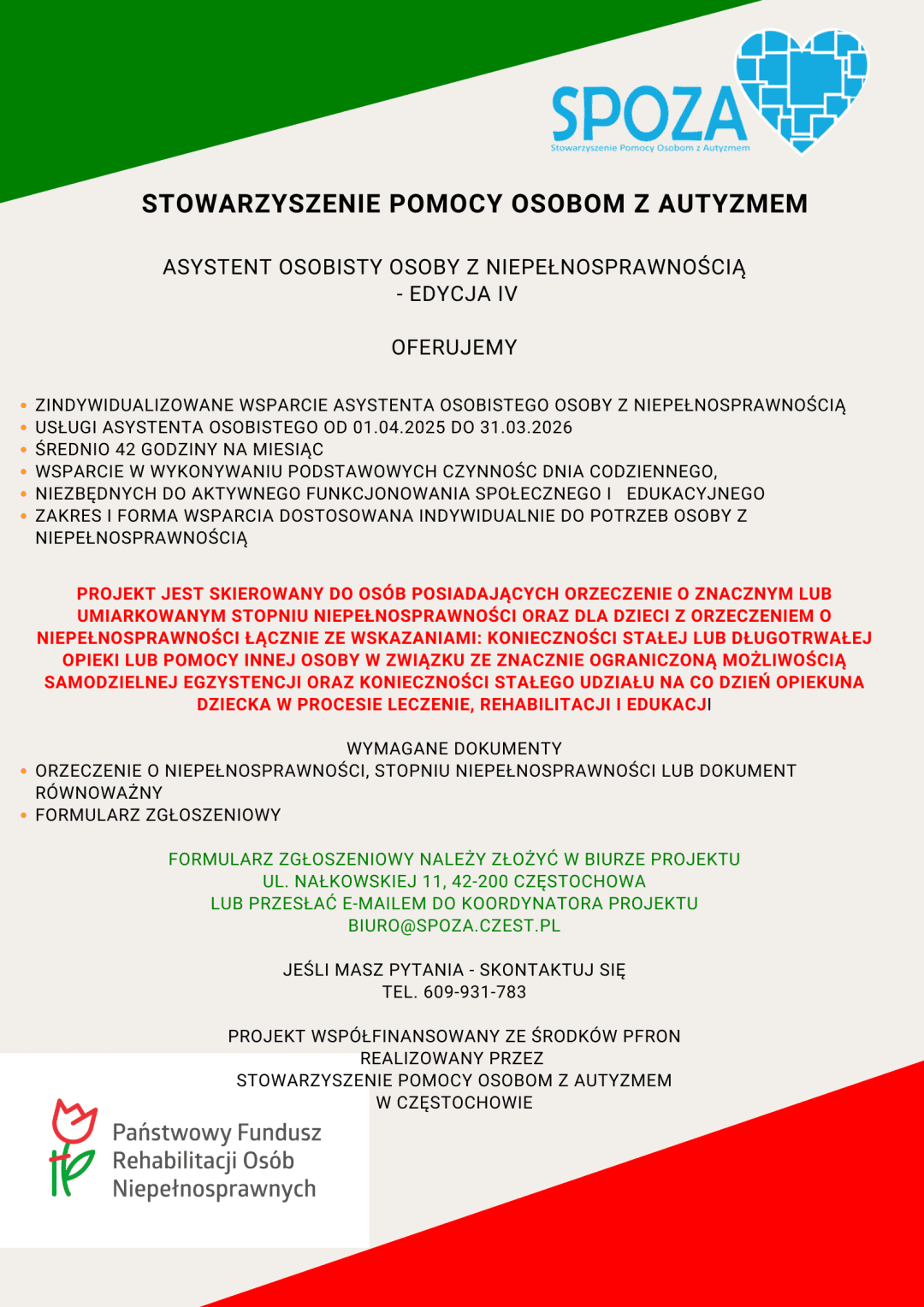 Asystent osobisty osoby z niepełnosprawnością PFRON 2025 karta-zgloszenia-pfron Umiejętności Opublikowano w dniu 22 kwietnia 2025 ← Projekt ” Klub Aktywności Osoby z Autyzmem” „Piknik charytatywny i Bieg charytatywny „dla Niebieskiego Azylu” →