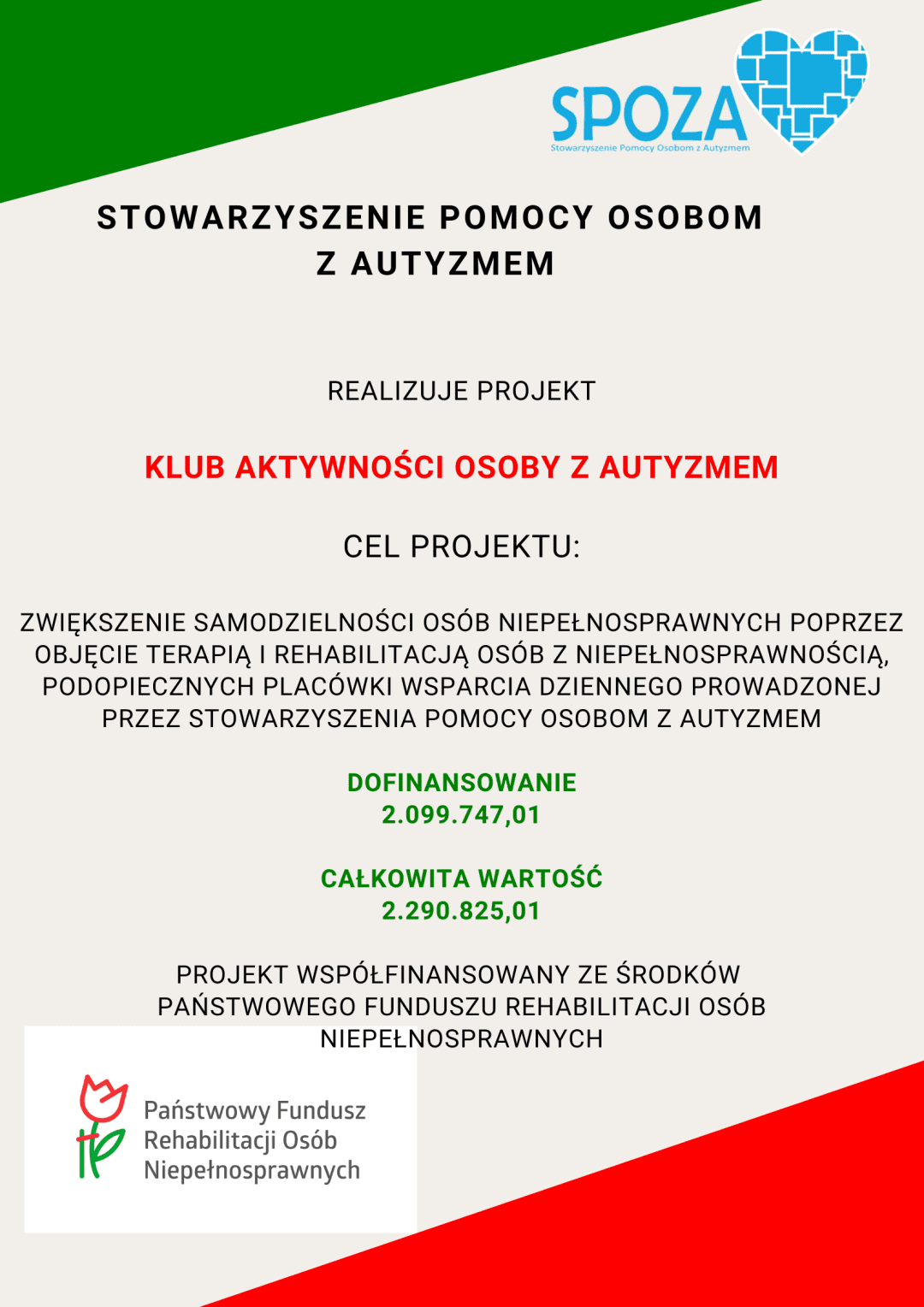 Stowarzyszenie Pomocy Osobom z Autyzmem realizuje projekt „Klub aktywności osoby z autyzmem”